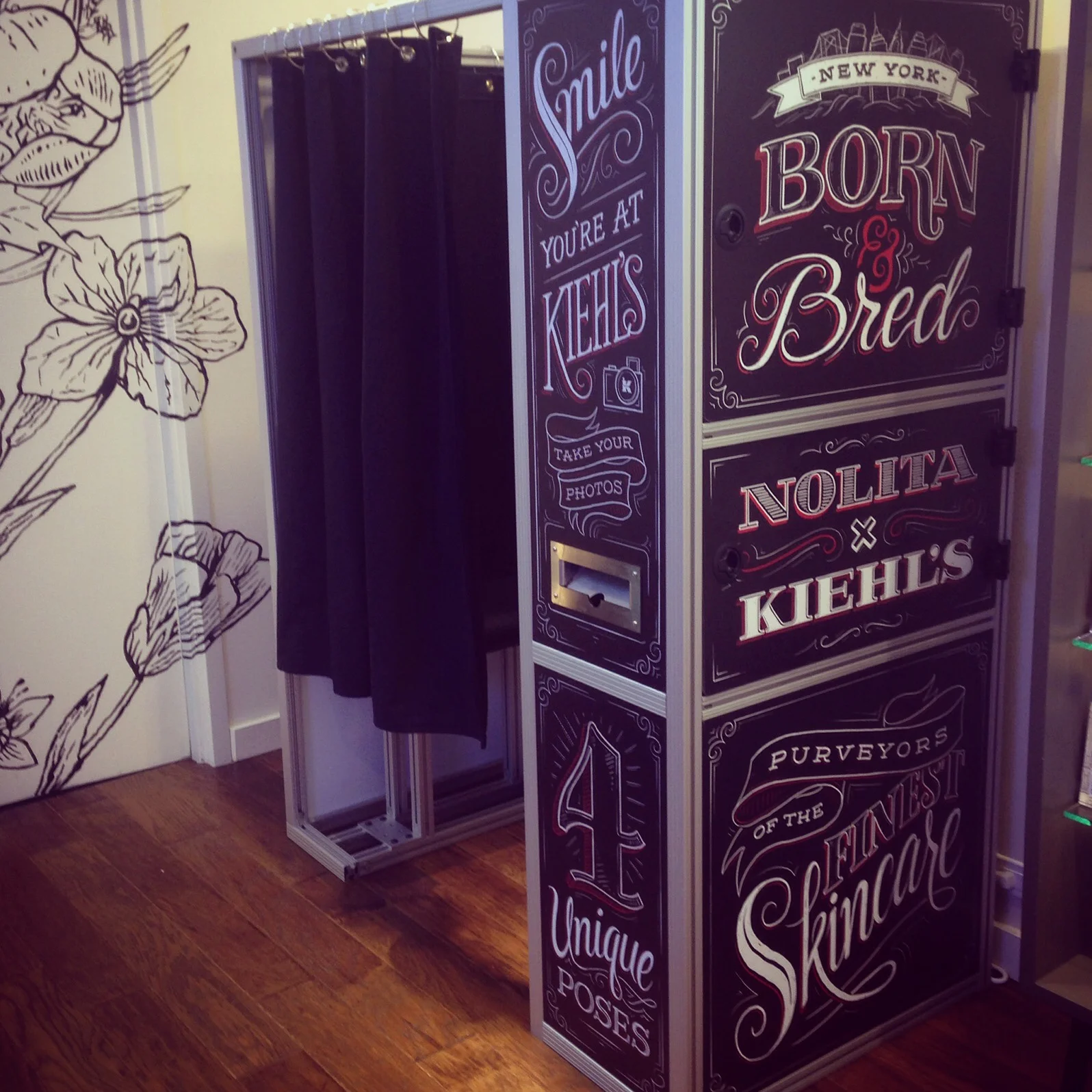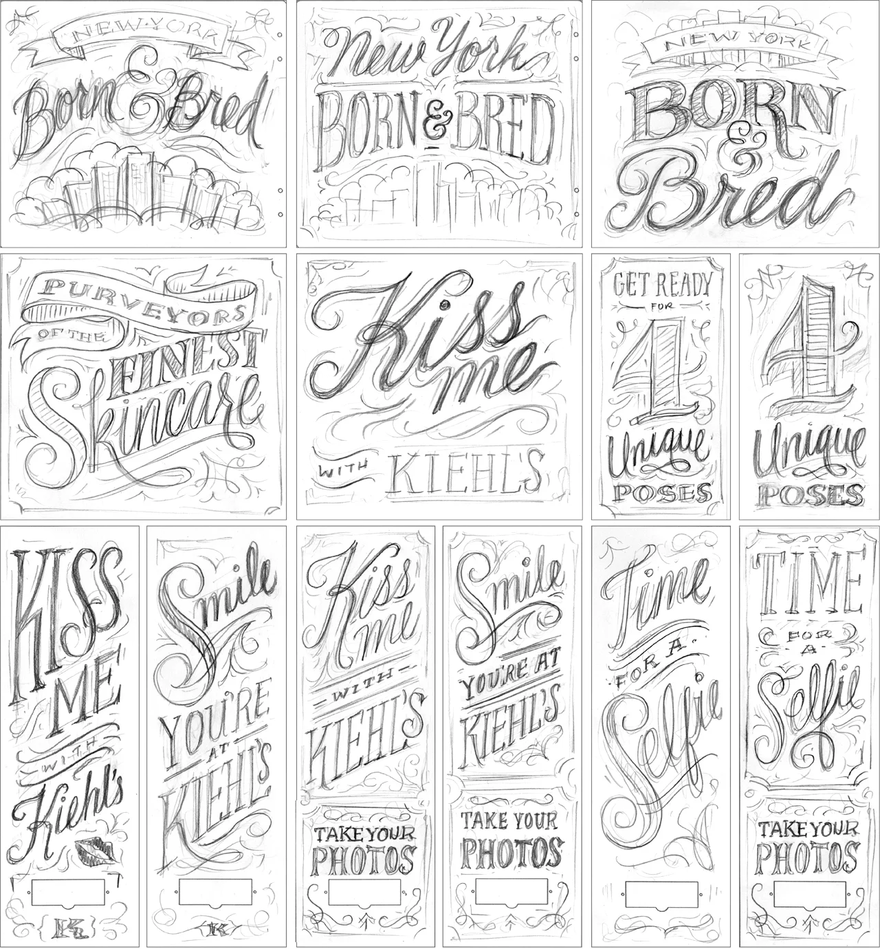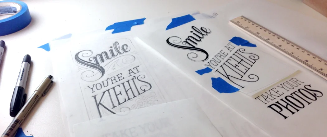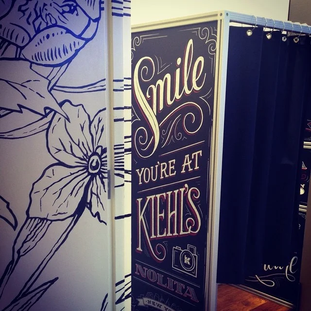 In 2014, Kiehl's opened a new store in New York City's SoHo neighborhood. They were looking for a fresh and impactful take on the photo booth. Following the success of the tote lettering, I created a custom set of curvacious yet sassy lettering lockups and instructional callouts for the outside and inside panels. It was a blast.